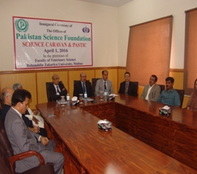 The opening ceremony of new office of Science Caravan & PASTIC was inaugurated at Faculty of Veterinary Sciences, Bahauddin Zakariya University, Multan on April 1st ,2016. Prof. Dr. Muhammad Ashraf, Chairman, Pakistan Science Foundation was the Chief Guest and Prof. Dr. Tahir Amin Vice Chancellor, BZU-Multan was the Guest of Honor of the Opening Ceremony. Prof. Dr. Muhammad Akram Shaikh, Director General, PASTIC was also present on the ocassion.