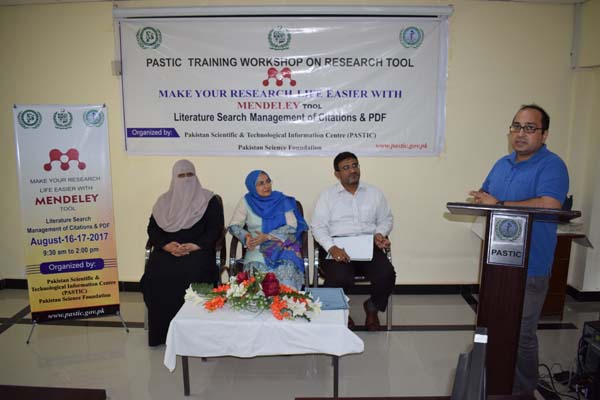 Participant receiving certificate from Dr Ayesha Rauf, HOD Department of Health Professionals Education at Shifa College of Medicine on closing ceremony of Mendeley Training Workshop by Pakistan Scientific and Technological Information Centre (PASTIC), Islamabad.
