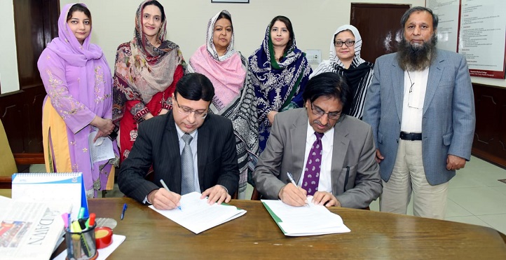 Prof. Dr. M. Akram Shaikh, Director General PASTIC and Prof. Dr. M. Umer, Vice Chancellor, Rawalpindi Medical University signing MOU to share the services of PASTIC.
