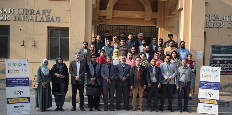 Pakistan Scientific and Technological Information Centre (PASTIC) is a premier organization for Collection and Dissemination of Scientific & Technological Information to cater to the information needs of the scientific community at National Level. PASTIC in collaboration with Government College University Faisalabad (GCUF) organised one day training activity on Open Journal Management System (OJS) on dated 09-12-2023 to empower the Journal Publishers community with modern Journal publishing tools and techniques. Dr. Adnan Amin, Lecturer IM Sciences, Peshawar was the resource person and Fifty two (52) consortium members from Faisalabad region participated in the training activity. Activity was performed under development project titled “National Digital Archive of Research Published in Pakistani journals”. Project Manager, Mr. Saifullah Azim briefly introduced the project’s current achievements and ongoing plans. During the closing ceremony, Director General, PASTIC Prof. Dr. Muhammad Akram Shaikh briefly introduced the PASTIC services. He also described the project aimed and objective to provide single electronic-platform to Journals publisher’s community for preservation and dissemination of research published in indigenous research Journals. Dr. Tanveer Shahzad Director ORIC, GCUF graced the event during closing ceremony by distrusting the certificates to the participants.